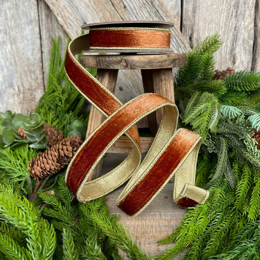1” Bronze Wired Velvet Ribbon, 5 yards, Wired ribbon