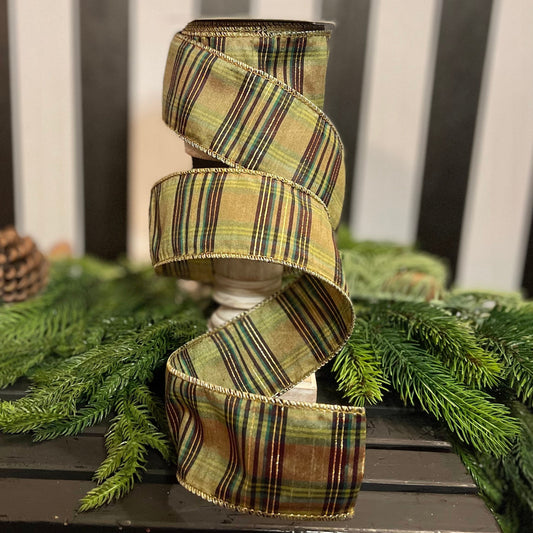 2.5" Green Moss Christmas Plaid, Woodsy Christmas Ribbon, Christmas Plaid Ribbon