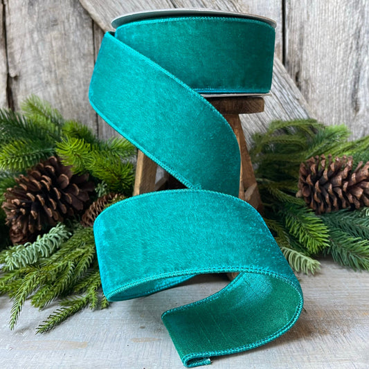 2.5" Teal Velvet Luster RIbbon, Farrisilk Ribbon, Velvet RIbbon