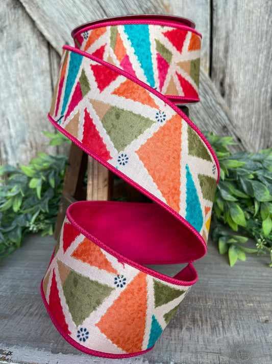 2.5" Vibrant Mosaic Wired Ribbon, Farrisilk Ribbon, Spring Ribbon