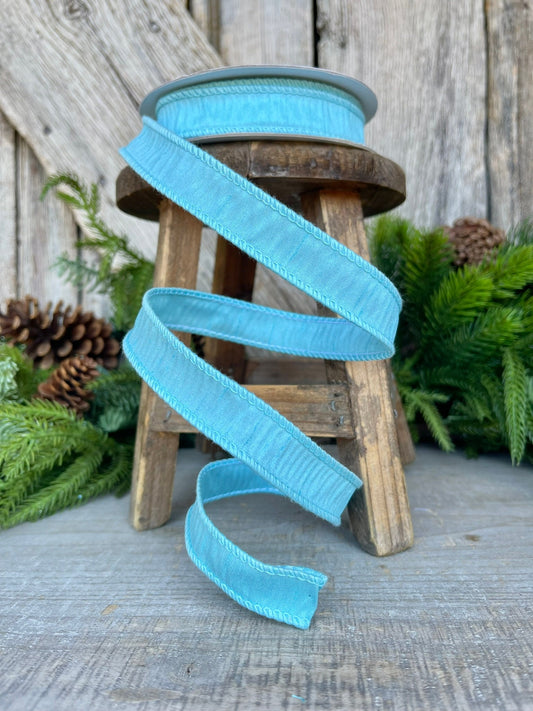 7/8" Aqua Blue Dupioni Ribbon, Wired Ribbon, Narrow Ribbon