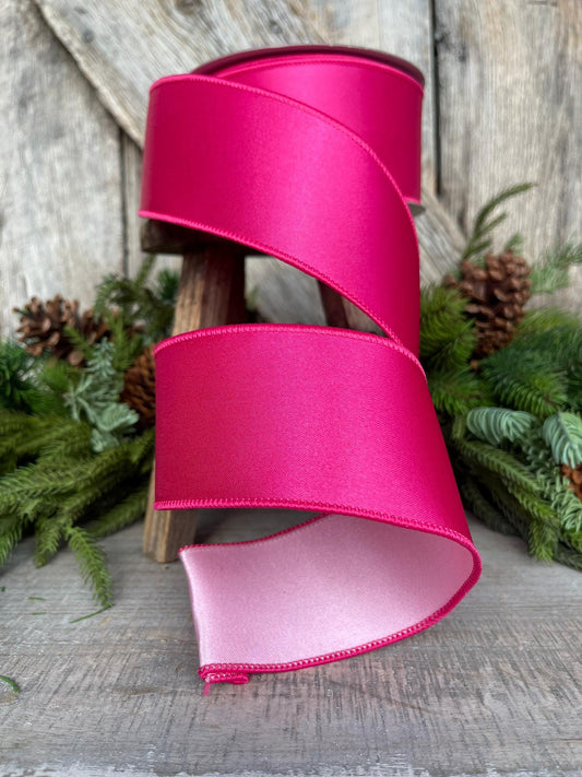 2.5" Hot Pink Light Pink Wired Satin Ribbon, Farrisilk Ribbon, Duo Satin Ribbon