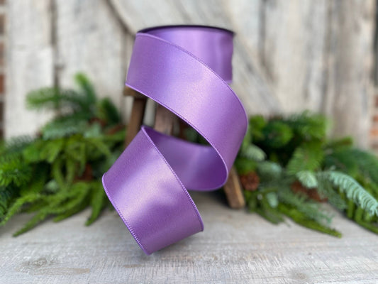 2.5" Purple Lavender Wired Ribbon, Farrisilk Ribbon, Satin Ribbon
