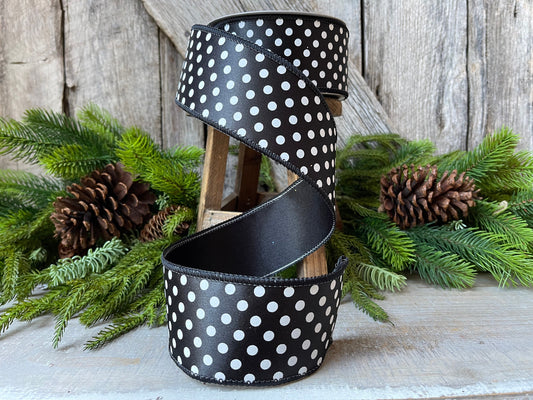 2.5" Black White Mini Dots, Farrisilk Ribbon, Polka Dot RIbbon
