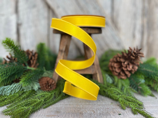 1" Yellow Satin Wired Ribbon, Farrisilk Ribbon, Satin Ribbon