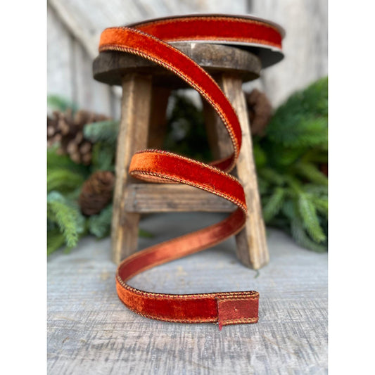 3/4" Cinammon Velvet Ribbon, Farrisilk Ribbon, Fall Ribbon