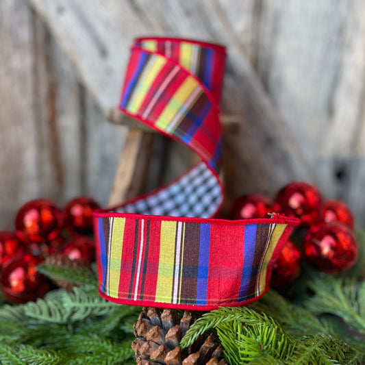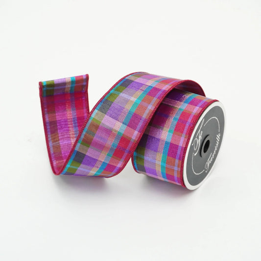 2.5" Christmas Pastel Candy Plaid Ribbon, Farrisilk Ribbon, Christmas Tree
