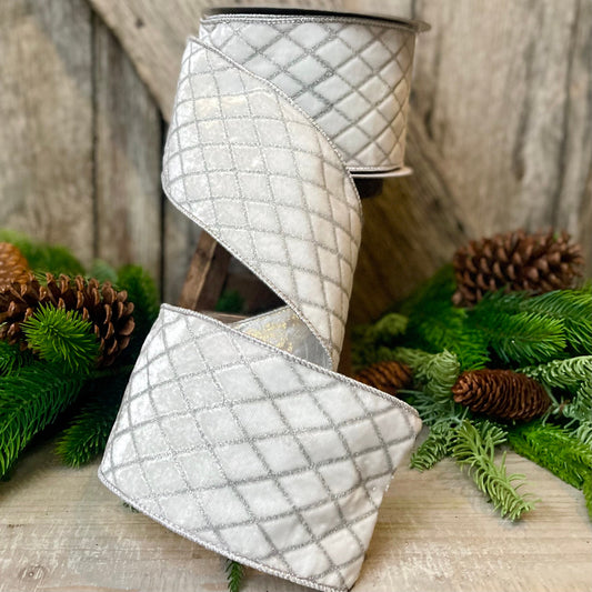 4" White Velvet Metallic Diamonds Ribbon, Farrisilk Ribbon, White Velvet