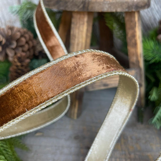 1” Pecan Brown Satin Velvet Ribbon, Farrisilk ribbon, Velvet ribbon