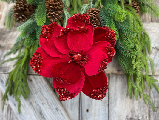 21" Red Velvet Magnolia, Christmas Magnolia, Faux Magnolia Stem