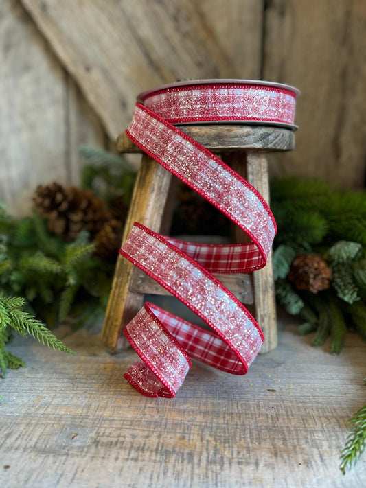 1" Sugar Candy Plaid Wired Ribbon, Farrisilk Ribbon, Gingerbread Ribbon