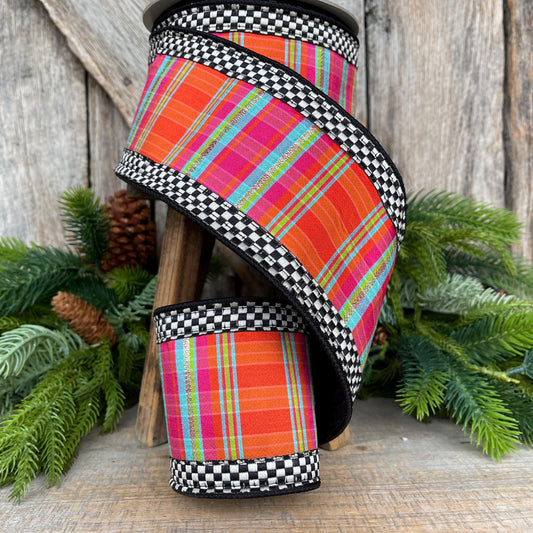 4" Kitschy Plaid Ribbon, Farrisilk Ribbon, Christmas Plaid Ribbon