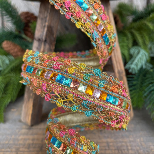 1.5" Sherbert Swirls Ribbon, Farrisilk Ribbon, Jeweled RIbbon
