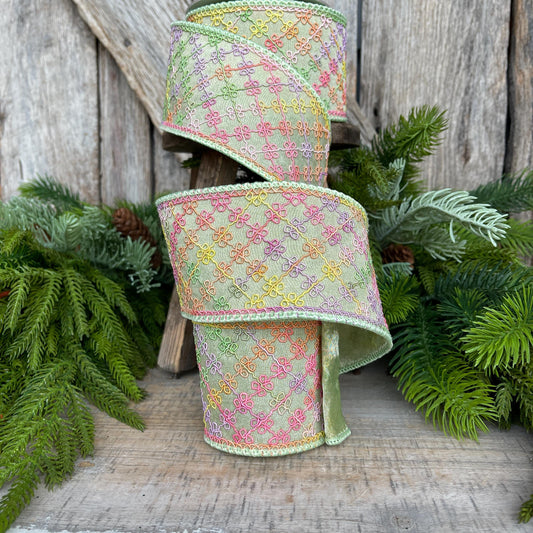 3.5" Pastel Ribbon, Farrisilk Ribbon, Tie Dye Trellis Ribbon