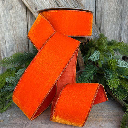 2.5” Orange Velvet Ribbon, Halloween Ribbon, Fall Ribbon