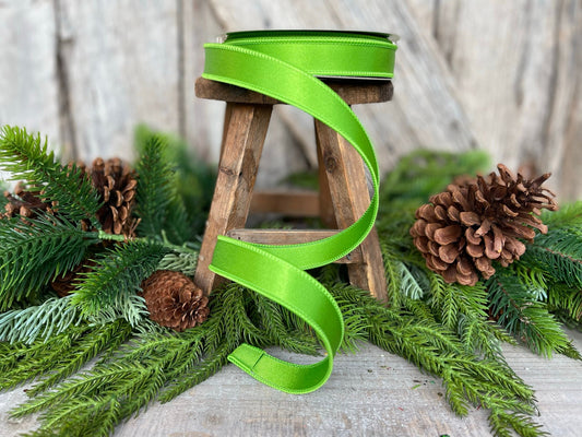1" Lime Green Satin Ribbon, Farrisilk Ribbon, Wired Ribbon