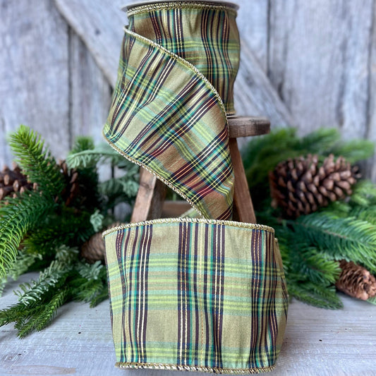 4" Green Moss Christmas Plaid, Woodsy Christmas Ribbon, Christmas Plaid Ribbon