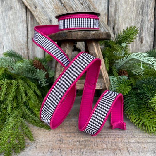 1" Hot Pink & Black White Mini Checkered Ribbon, D Stevens Ribbon, Check Ribbon