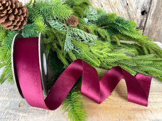1.5" Burgundy Velvet Ribbon, Double Faced Velvet Ribbon, Unwired Velvet Ribbon
