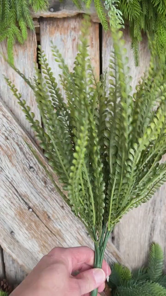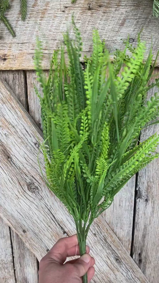 32” Hanging Plastic Fern Spray, Artificial Fern Greenery, Faux Fern Stem