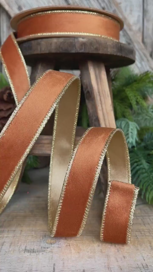 Copper Brown Velvet Wired Ribbon: 1" Fall Christmas Decor