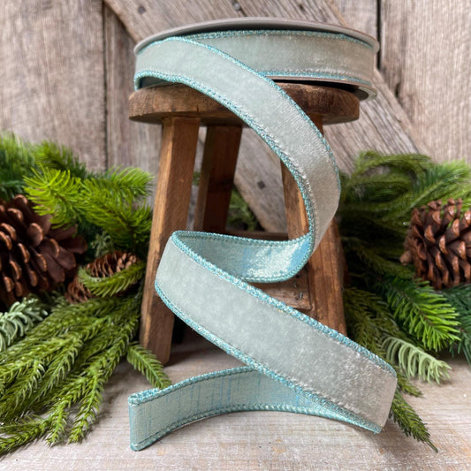 1" Light Blue Velvet Luster Wired Ribbon, Farrisilk Ribbon, Velvet Ribbon