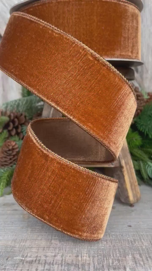 2.5” Pecan Brown Velvet Ribbon, Farrisilk ribbon, Velvet ribbon