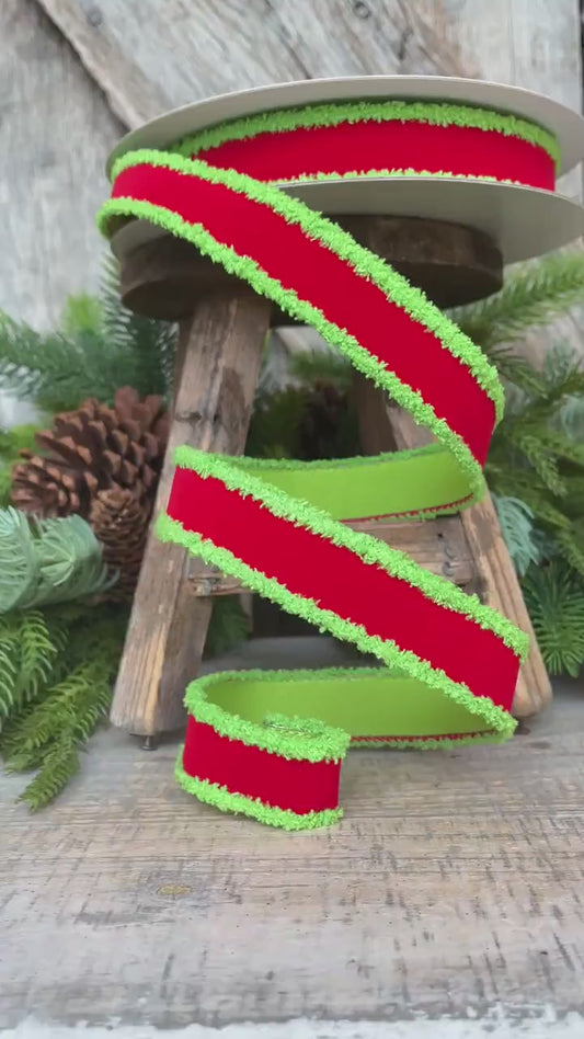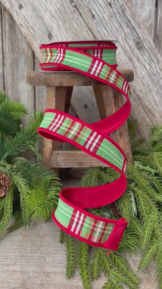 1" Red Lime Green Ribbon, Farrisilk Ribbon, Scrooge Trim Ribbon