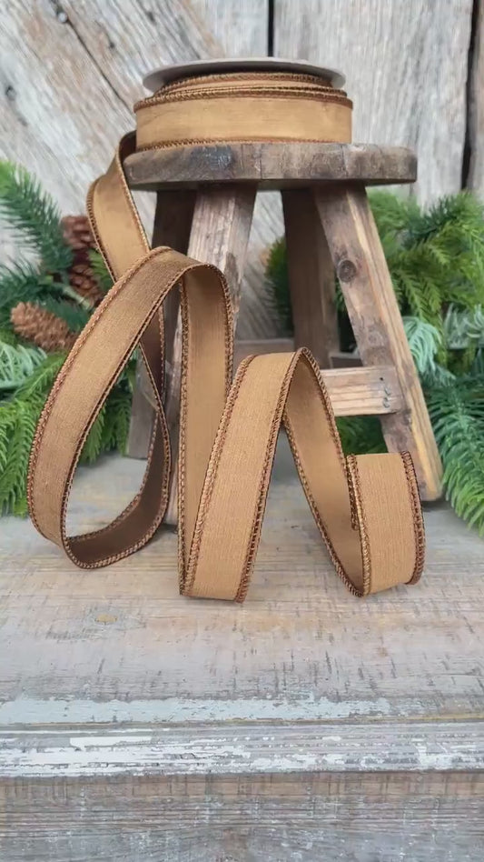 1" Antique Gold Wired Ribbon, Farrisilk Ribbon, Velvet Ribbon