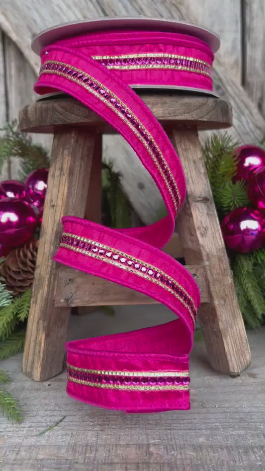 1" Hot Pink Twinkle Trim Ribbon, Farrisilk ribbon, Pink Jeweled RIbbon