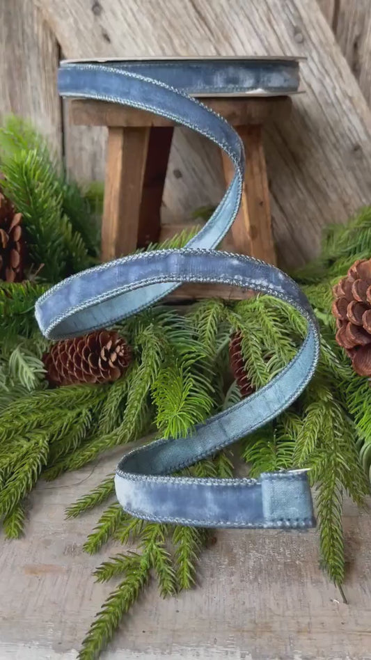 Farrisilk 3/4" Steel Blue Velvet Luster, Blue Velvet Ribbon, Muted Blue Ribbon
