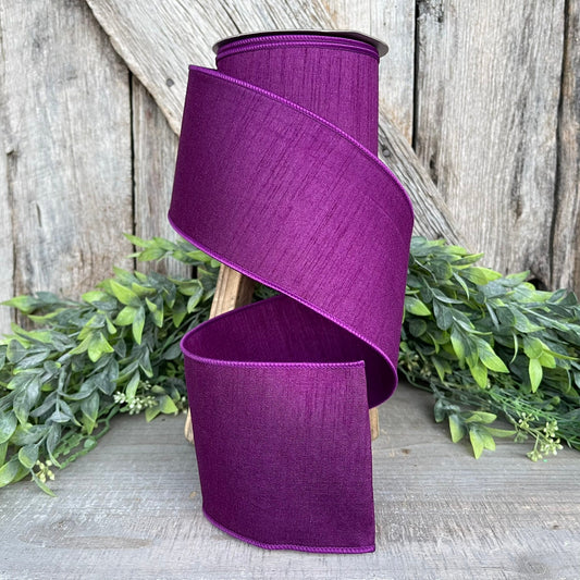 4” Purple Dupion Ribbon, Farrisilk ribbon, wired ribbon