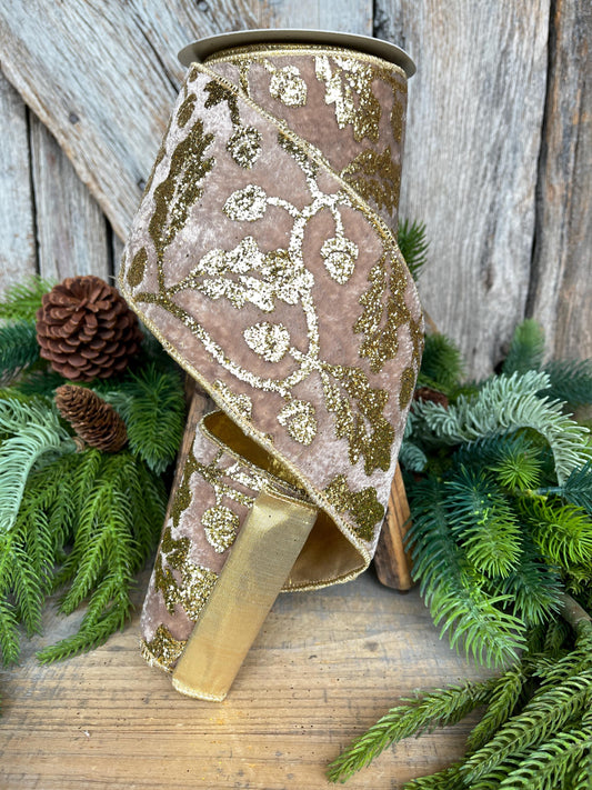 4" Golden Oak Velvet Ribbon, Christmas Ribbon