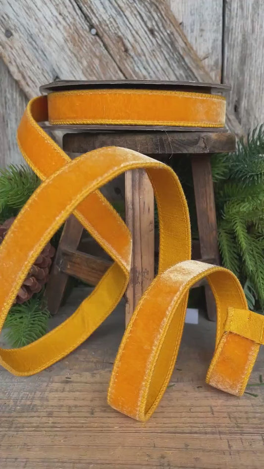 1" Golden Yellow Ribbon, Wired Velvet Ribbon, Honey Golden Velvet