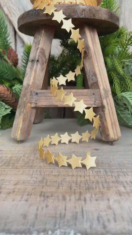 3/4" Gold Star Ribbon Trim, Unwired Ribbon, Star Trim