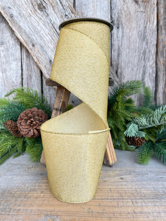4" Gold Ribbon, Christmas Tree Ribbon, Gold Christmas Ribbon