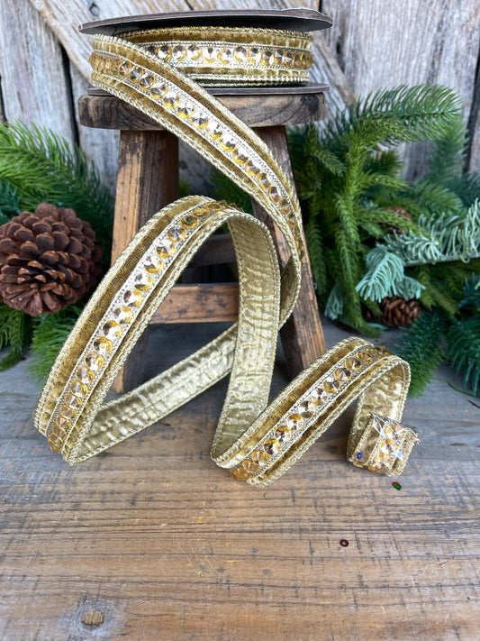 5/8" Gold Jeweled Ribbon, Gold Jeweled RIbbon, Christmas Ribbon
