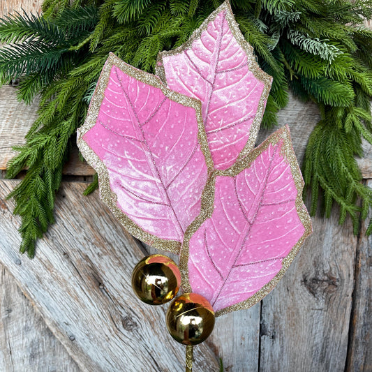 Pink Holly Leaf Christmas Spray: Pink Gold Ornament Floral Stem, 30"