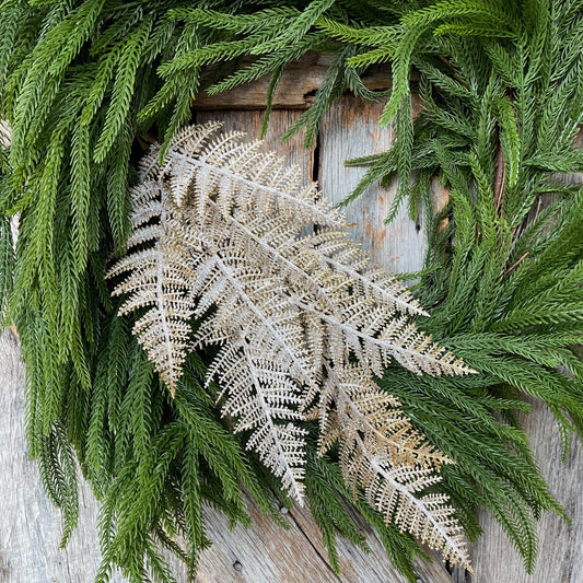 29" Gold Fern Spray, Christmas Fern Spray, Frosted Fern