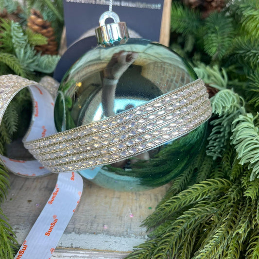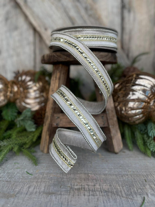 1" Platinum GoldTwinkle Trim Ribbon, Farrisilk ribbon, Platinum Jeweled RIbbon