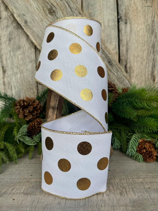 4" Gold Polka Dot Ribbon, Christmas tree ribbon, Farrisilk Ribbon