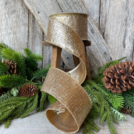 2.5" Gold Ribbon, Christmas Ribbon, Shimmer Ribbon