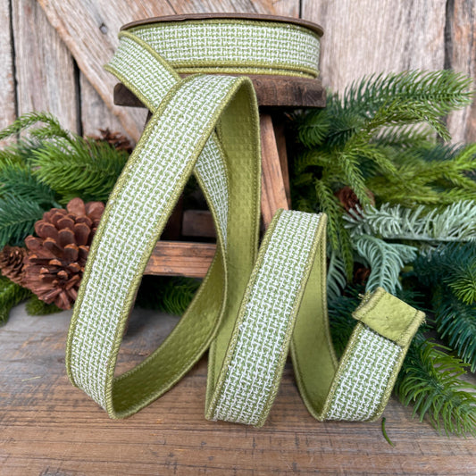 1" Moss Green Textured Ribbon, Green Ribbon, Christmas Ribbon