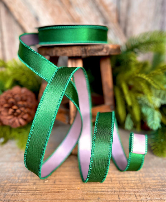 1" Forest Green Satin Ribbon, Farrisilk Ribbon, Wired Ribbon