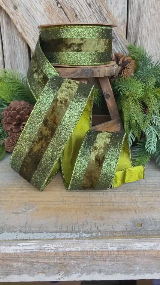 2.5" Emerald Green Velvet Ribbon, Vlevet Glitter Stripe Ribbon, Christmas Ribbon