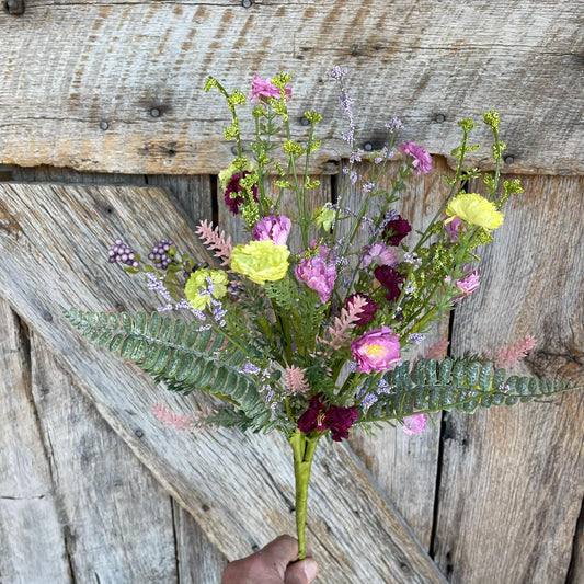 20" Lavender Purpel Mixed Wild Flower Bush, Floral Filler Spray, Spring Florals
