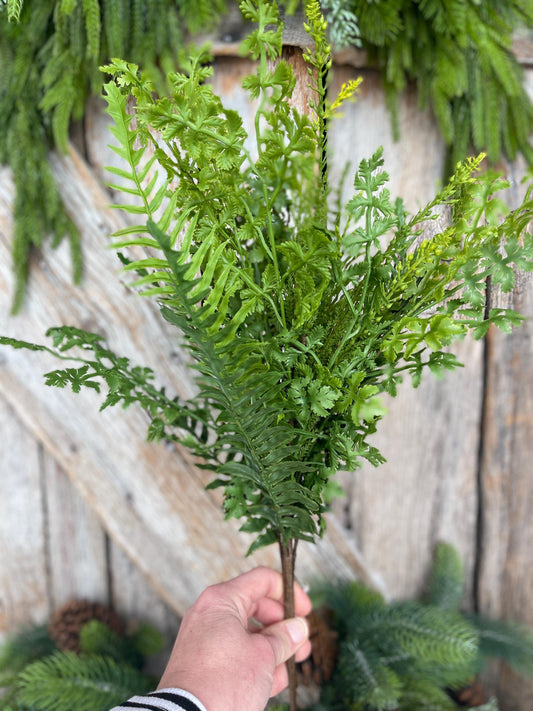 20.5” Soft Touch Mixed Fern Spray, UV Faux Foliage Stem, Wreath Supply