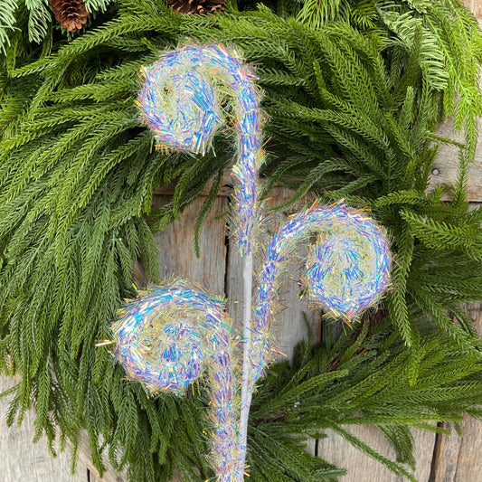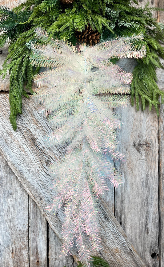 30" White Iridescent Fuzzy Curly Spray, Christmas Tree Spray