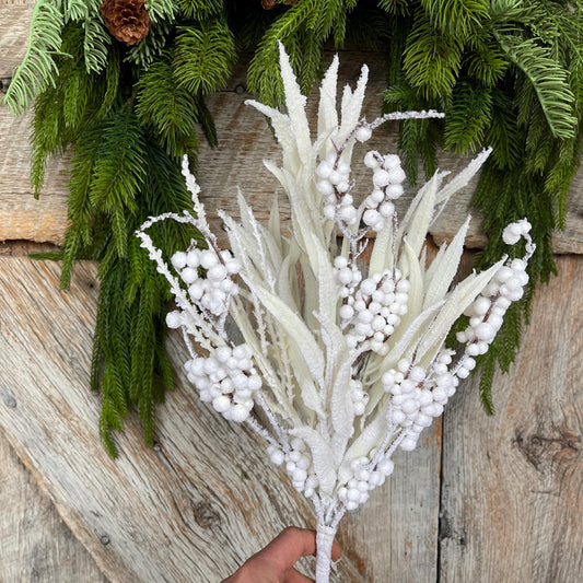 20" White Snow Berry Bush, White Christmas Greenery, White Filler Bush