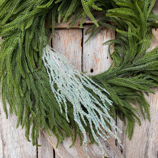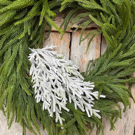 24" Flocked Norfolk Pine Spray, Flocked Pine Spray, Flocked Greenery